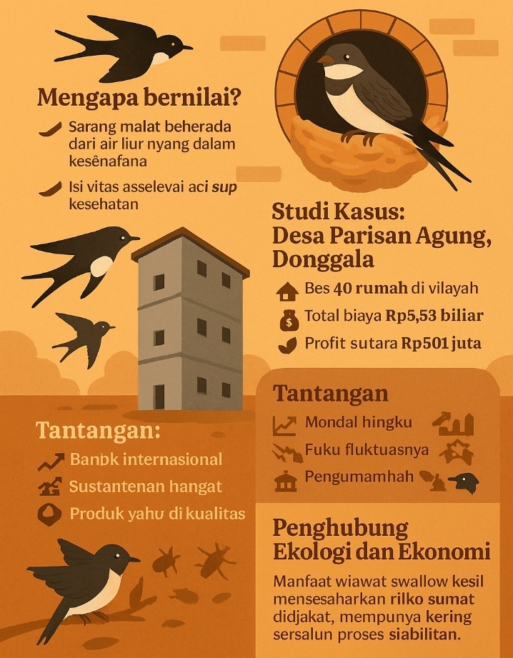 Kisah dari Desa Parisan Agung di Donggala membuktikan bahwa peternakan walet bisa menjadi motor penggerak ekonomi lokal. Dengan pendapatan miliaran rupiah per periode, usaha ini mampu mengangkat kesejahteraan masyarakat desa.