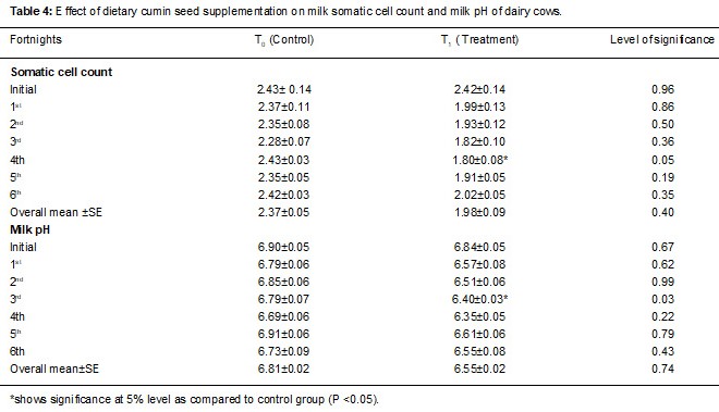Pengaruh suplementasi biji jintan dalam makanan terhadap jumlah sel somatik susu dan pH susu sapi perah.