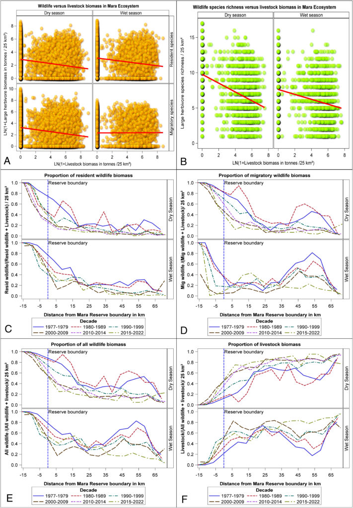 Sebuah studi baru-baru ini mencoba menganalisis dampak peternakan terhadap satwa liar. Peneliti tersebut berargumen bahwa penggembalaan ternak tidak secara signifikan memengaruhi populasi satwa liar di Mara. Mereka bahkan menyimpulkan bahwa peternakan bisa berjalan beriringan dengan konservasi.