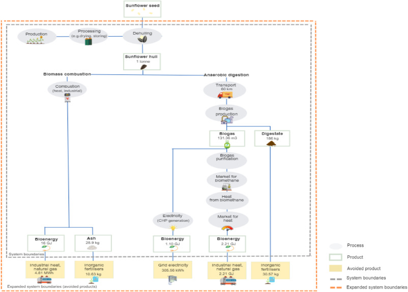 - Dari setiap ton kulit bunga matahari, pembakaran menghasilkan pengurangan emisi karbon sebesar ±416 kg CO₂-ekuivalen, sementara pencernaan anaerob justru bisa menghasilkan tambahan emisi metana jika tidak dikelola dengan baik.
