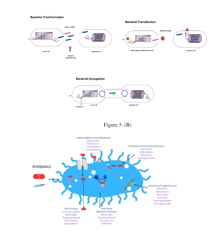 Tiga cara bakteri bertukar materi genetik (transformasi, transduksi, dan konjugasi) serta lima mekanisme utama resistensi terhadap antibiotik, termasuk menghalangi masuknya obat, memompa keluar, memodifikasi target, menghasilkan enzim perusak, dan menggunakan jalur metabolik alternatif.