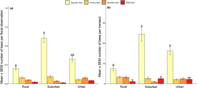 Yang menarik, penelitian ini menunjukkan bahwa lebah labu justru paling melimpah di daerah suburban dan urban dibandingkan di pedesaan. Ini mungkin terdengar aneh, karena kita sering mengira lebah hanya bisa hidup baik di desa yang penuh lahan hijau. Namun kenyataannya, kota dan pinggiran kota bisa menyediakan sumber makanan dan sarang yang cukup bagi lebah spesialis ini.