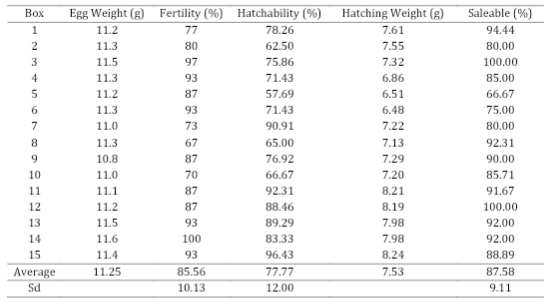 Tingkat kesuburan dan daya tetas di atas 75% dianggap baik, sehingga peternakan ini tergolong produktif.