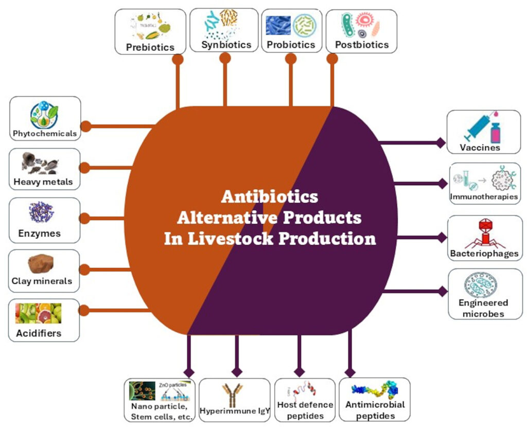 Ibeagha-Awemu, Eveline M dkk. 2025. Alternatives to antibiotics for sustainable livestock production in the context of the One-Health-Approach: Tackling a common foe. Frontiers in Veterinary Science 12, 1605215.
