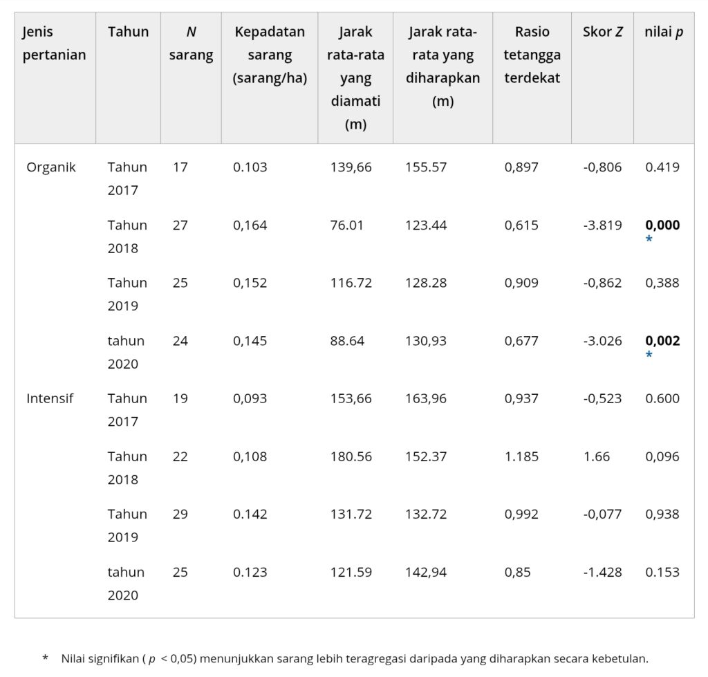 Tujuannya adalah untuk melihat apakah ada perbedaan signifikan dalam keberhasilan reproduksi burung antara kedua sistem pertanian tersebut.