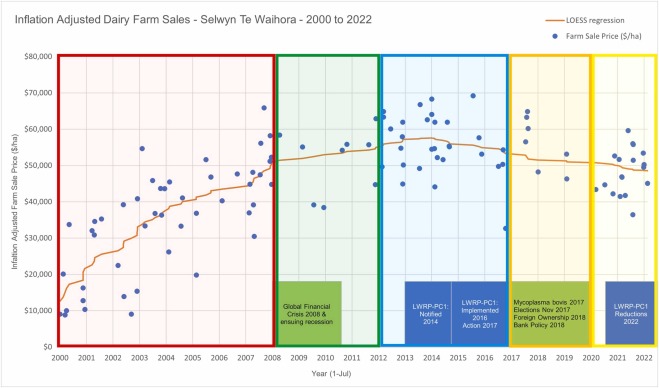 Percy, Edward dkk. 2025. The effect of freshwater regulation on farmland values in New Zealand–‘Dairy farming in Selwyn Waihora, Canterbury’. Land Use Policy 153, 107516.